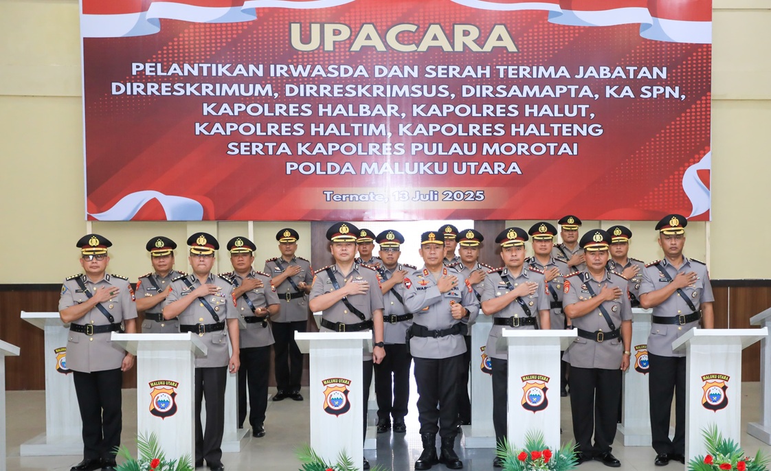 Mutasi tersebut tertuang dalam surat telegram Kapolri nomor ST/1422/VI/KEP./2025 dan ST/1423/VI/KEP./2025. Telegram tertanggal 25 Juni 2025 itu mencakup perubahan sejumlah jabatan penting di Polda Malut.